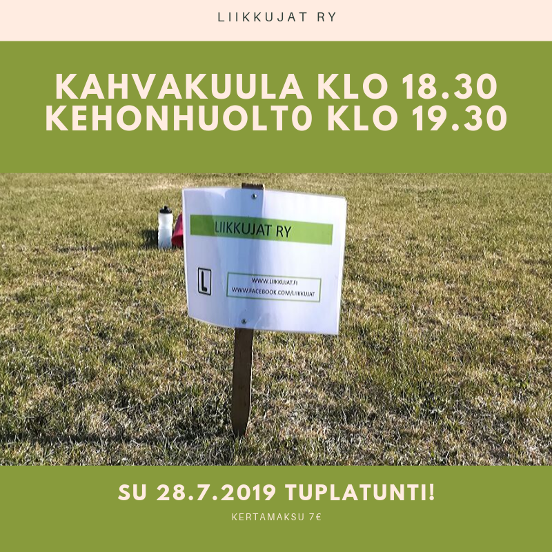 Torstaina 25.7 ei pidetä Kellokosken kehonhuoltotuntia. Sen sijaan sunnuntaina 28.7 pidetään tuplatunnit. Kahvakuula klo 18.30 ja kehonhuolto klo 19.30. Jälkimmäiselle tunnille tarvitset mukaan jumppa-alustan sekä pehmukkeen polven alle, mikäli sellaista arvelet tarvitsevasi. Osa liikkeistä tehdään polviseisonnasta. Osallistujien toiveiden mukaan polviasentoja voidaan karsia ja vaihtaa niitä myös muihin liikkeisiin. Liikkumisiin!